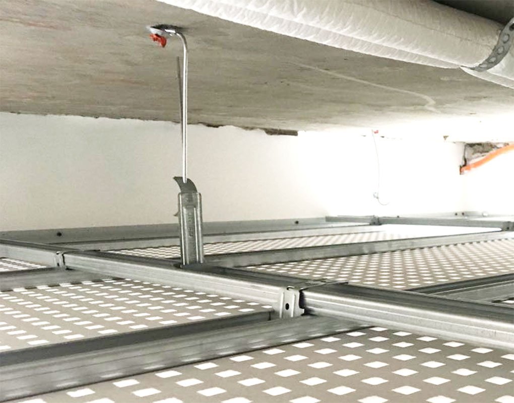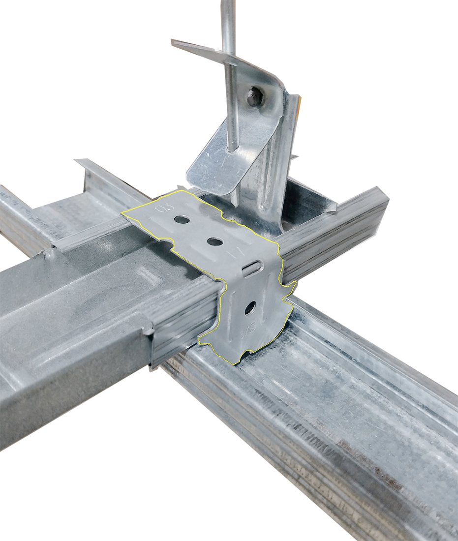 O conector multifunção para perfil canaleta F530, é utilizado para confecção de estrutura bidirecional para forros de drywall estruturado, quando as chapas de drywall utilizada, não permite amarração entre chapas, ou seja, são colocadas alinhadas.
