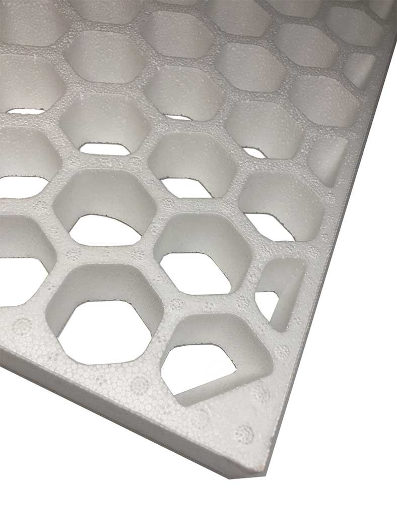 O Forro Colmeia é fabricado em isopor (EPS) devidamente modulado no padrão nacional 625x625mm, apresentando um design vazado que promove excelente ventilação e iluminação natural, além de valorizar o visual do ambiente.