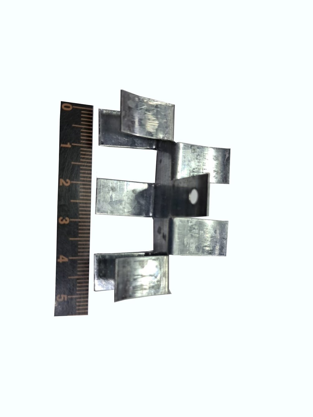 - Sustentação: Atua como suporte para a fixação do arame galvanizado que pende da estrutura superior (teto), permitindo a regulagem de altura do forro.